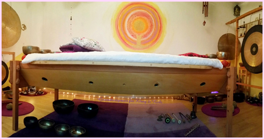 Auf der Monochordliege können Sie entdecken, wie Klang und Schwingung Ihre Sinne öffnet, sie Ihren ganzen Körper in jeder Zelle spüren und Sie ganz bei sich selbst ankommen.