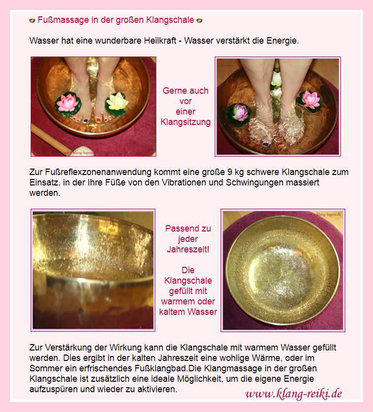 Fußreflexzonenklangmassage in der 9 kg großen Klangfußschale