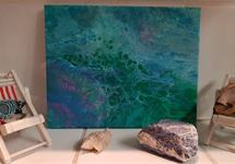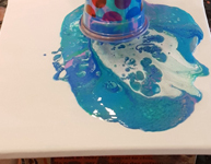 lassen die Farben fließen und ein Energiebild entstehen (Pouring mit Acrylfarben)